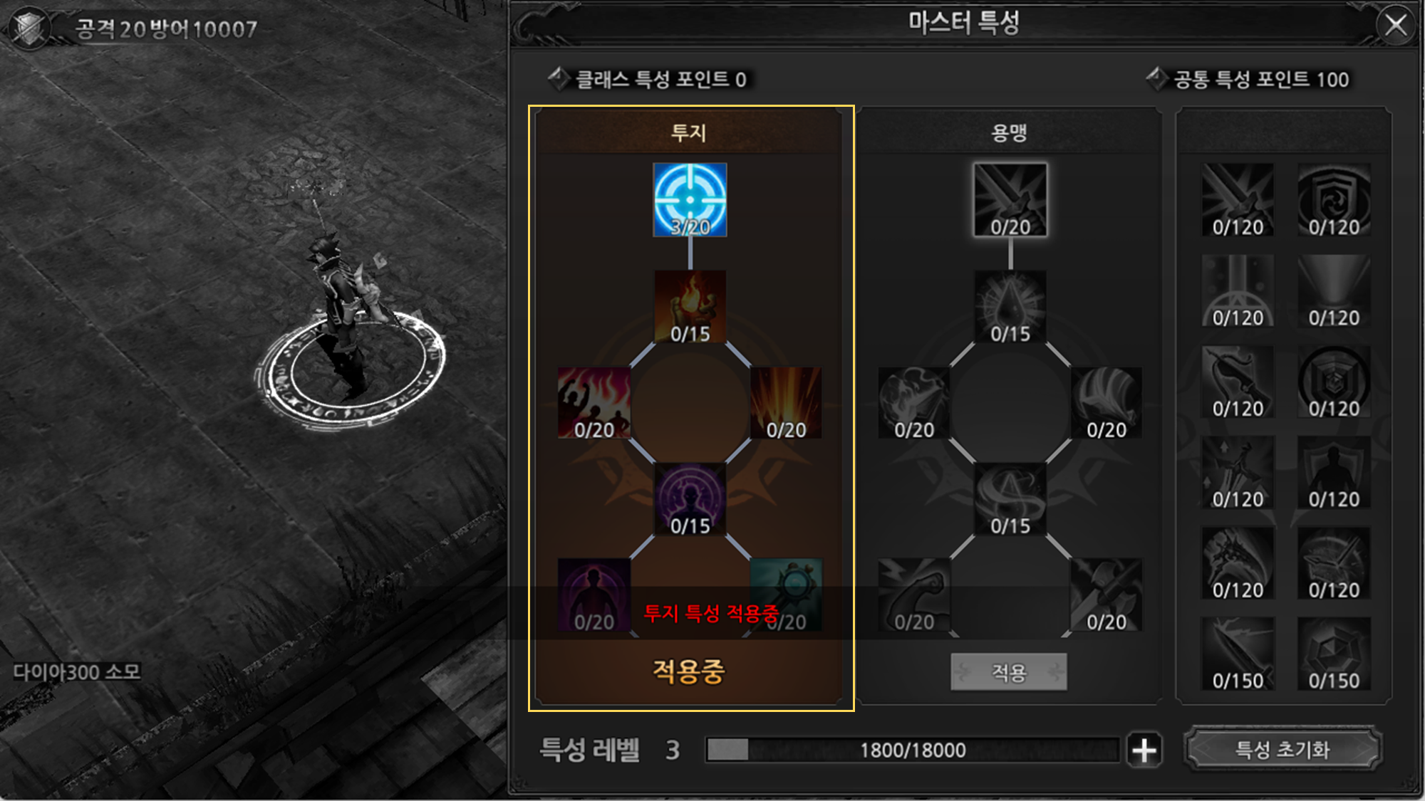특성 페이지 활성화하셔야 특성 효과에 포인트를 투자할 수 있습니다.