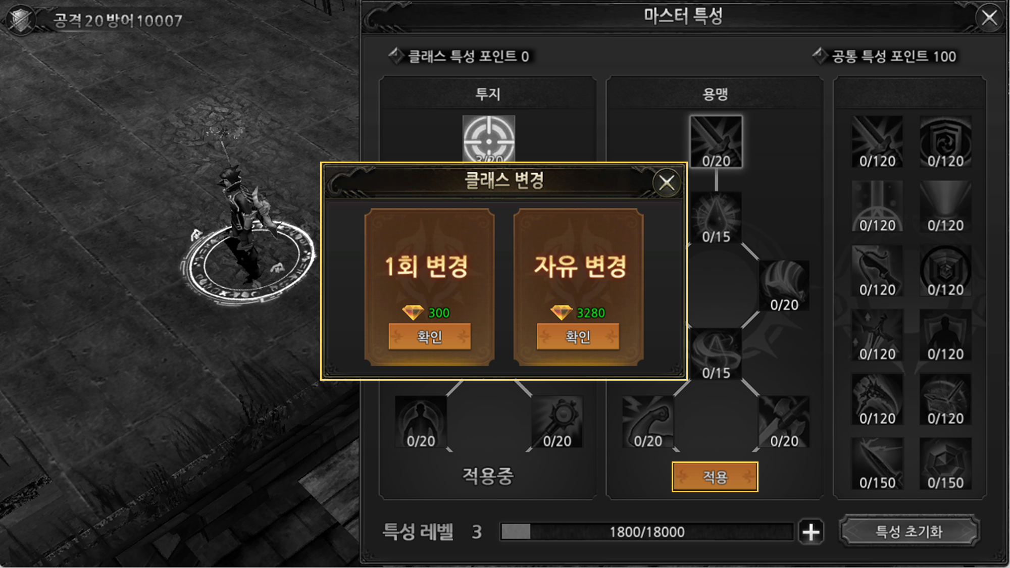 두 종류의 '클래스 특성' 중 포인트를 투자할 한 종류의 특성을 선택하셔야 합니다.