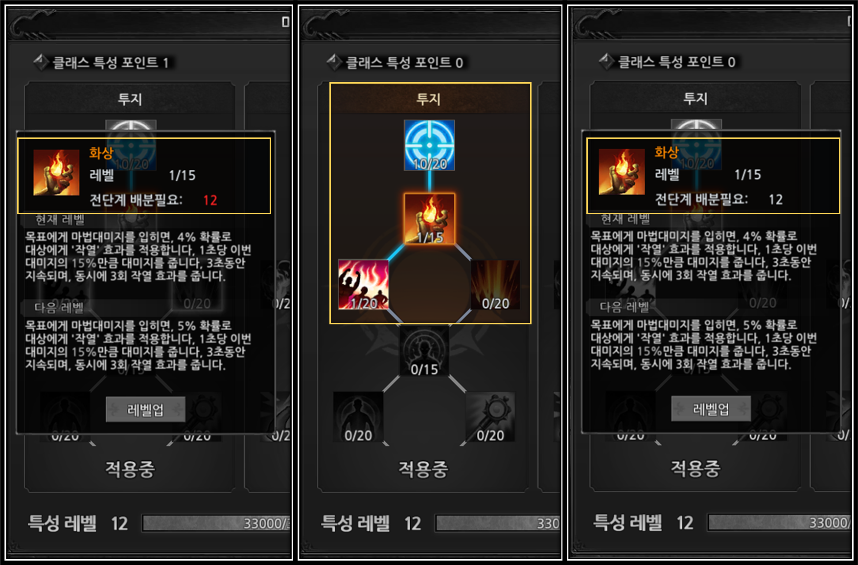 '클래스 특성'의 스킬을 일정 레벨 이상 상승시키기 위해서는