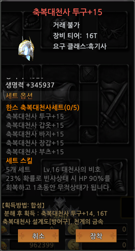 - +14 ~ +16 축복대천사 방어구가 추가됩니다.