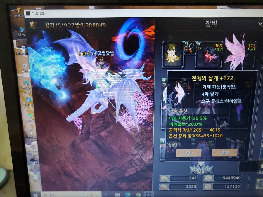 ㅣ서버9섭닻별닻별입니다날개 옵션이 사라졌어요 빨리 복구해주세요
