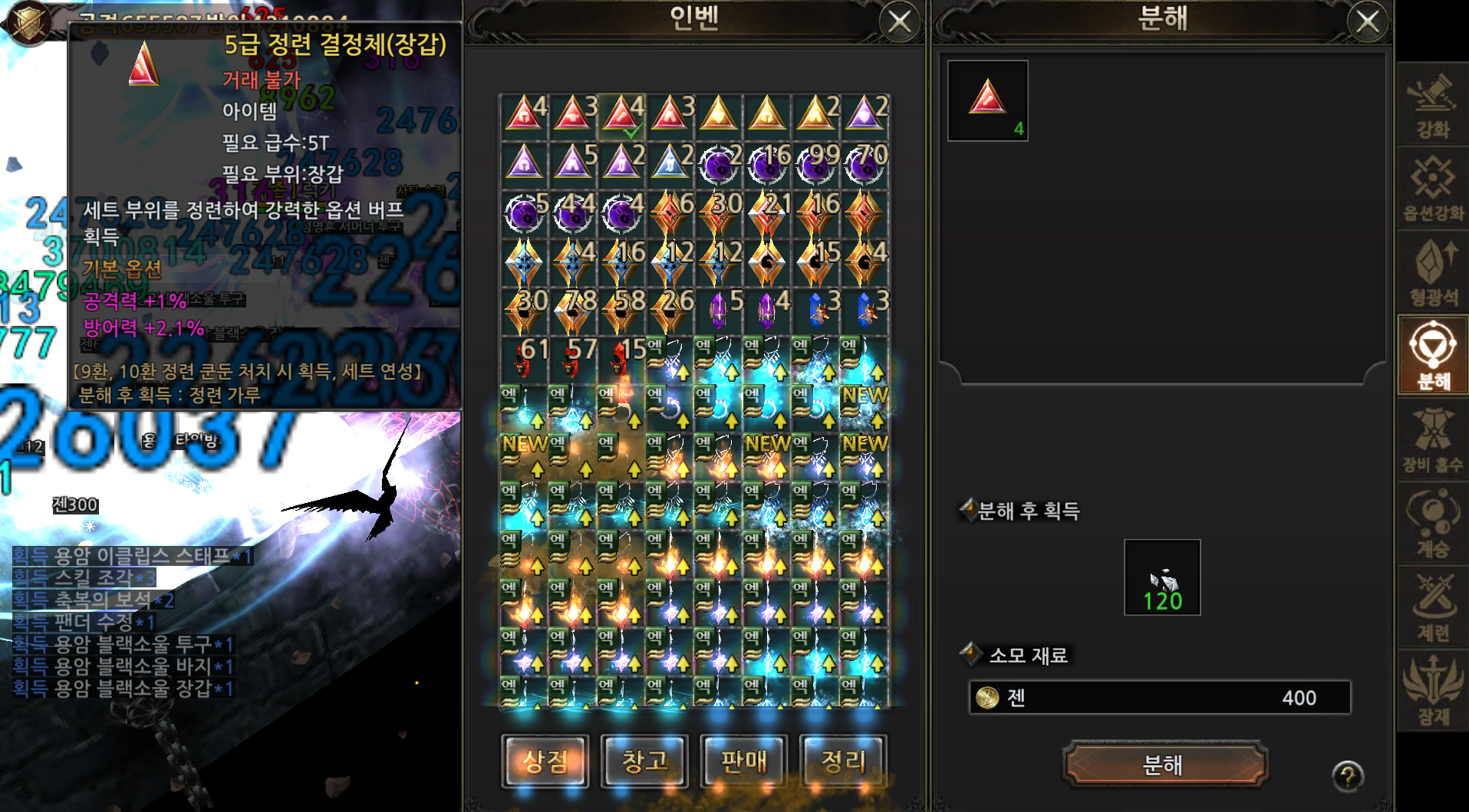 [건의] '정련 결정체' 분해 시 갯수선택