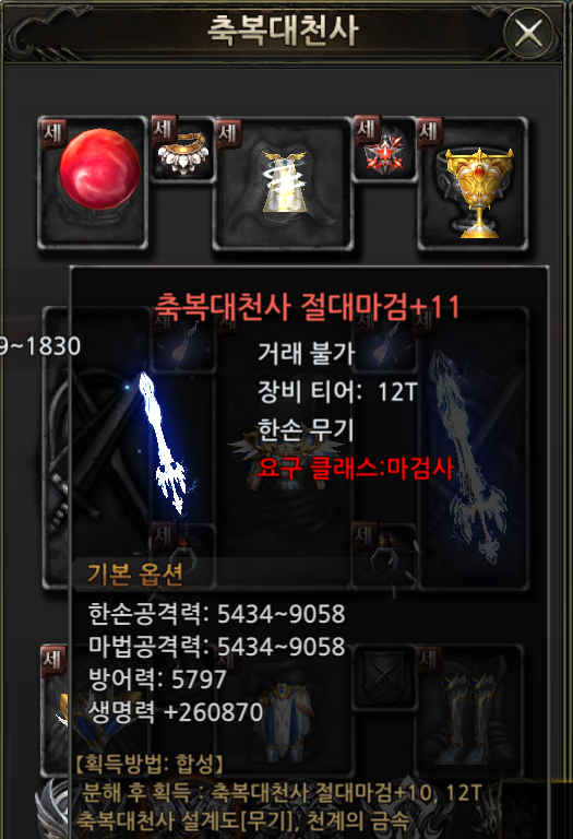 해당 축복 대천사 장비 착용 불가 현상이 확인되어
