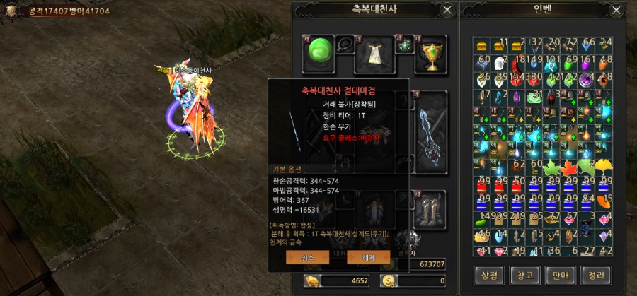 왼쪽 마검창에 장착이 안되서 보니 그림에는없는데 클릭하면 장착된것으로 나타남