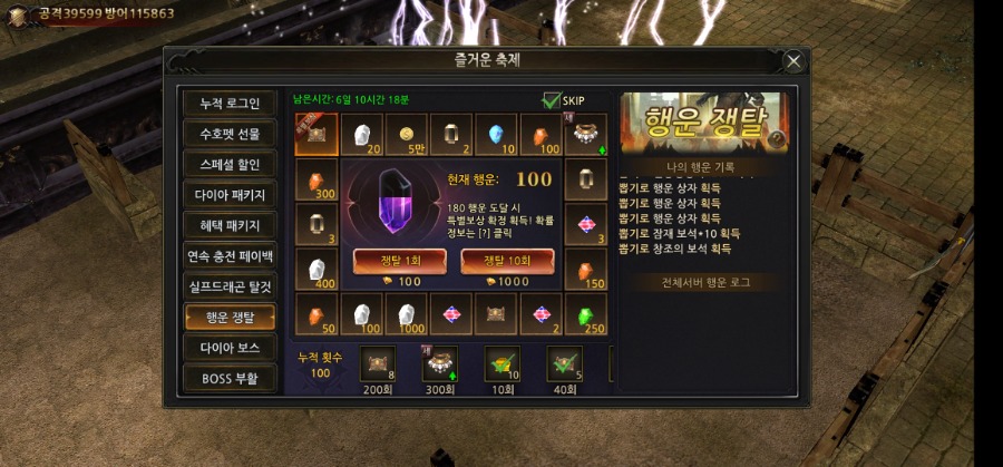 행운 쟁탈 이벤트와 관련하여 말씀해 주셨네요.
