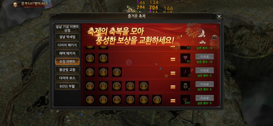 같은섭 본케릭은 문제 없는데 부캐릭 오늘 생성해서 200렙이 넘었는데 떡국떡 및 글자도 안나와요