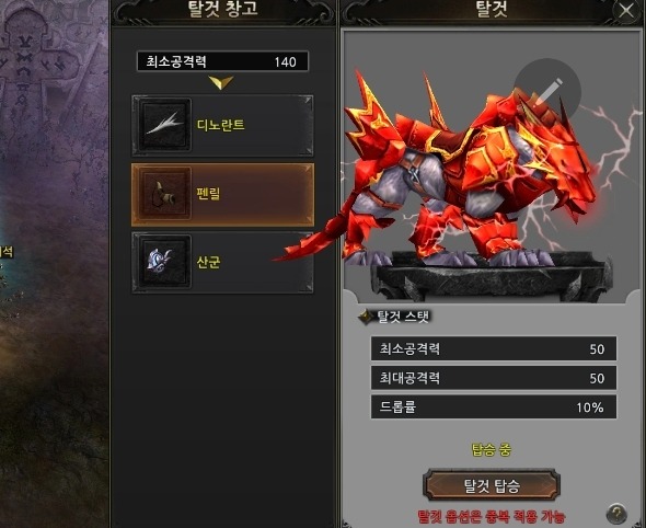 먼저, 펜릴 탈것 효과는 [합성]을 통해 합성 단계가 상승하면,