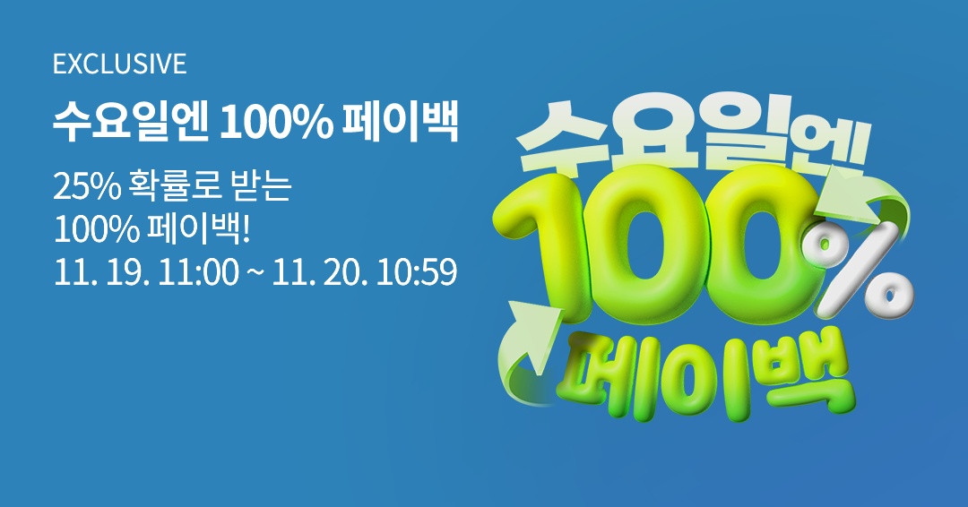 갤럭시 스토어 수요일엔 100% 페이백 이벤트가 진행됩니다!