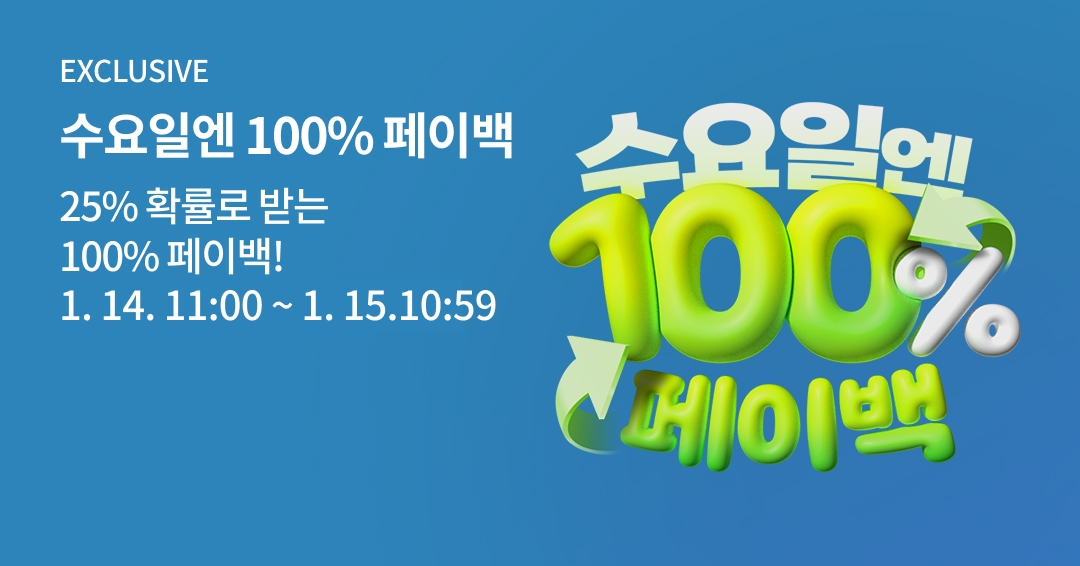 갤럭시 스토어 수요일엔 100% 페이백 이벤트가 진행됩니다!