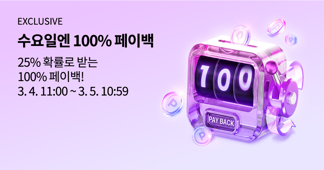 - 본 이벤트의 확률은 누적 결제 횟수와 무관하며, 전체 결제 건 25%의 확률로 당첨됩니다.