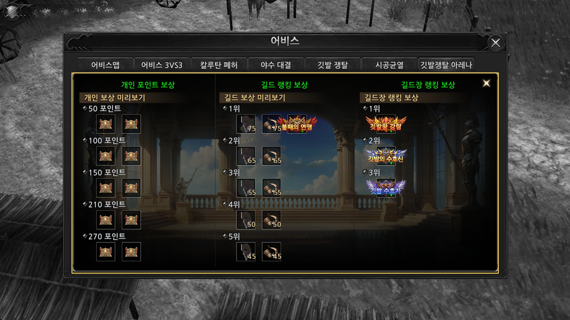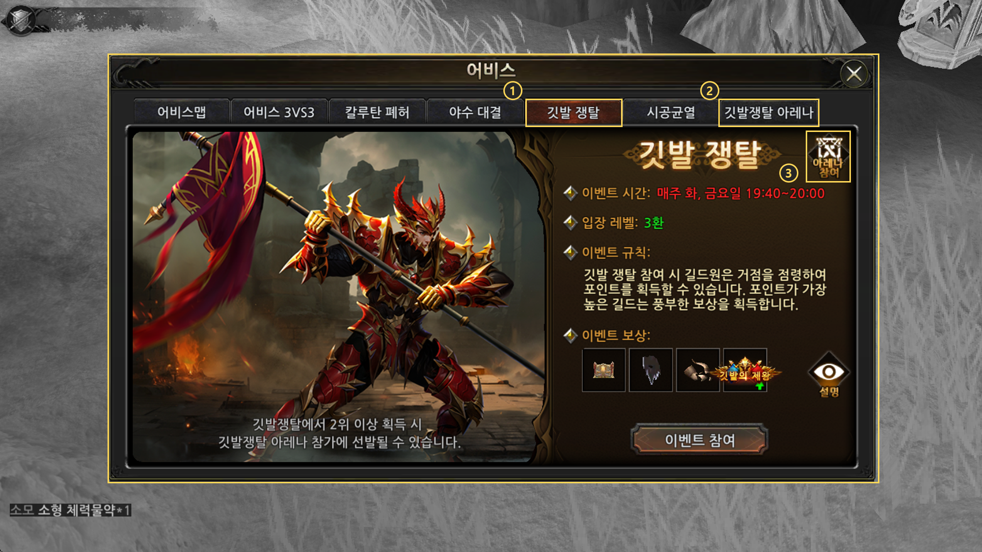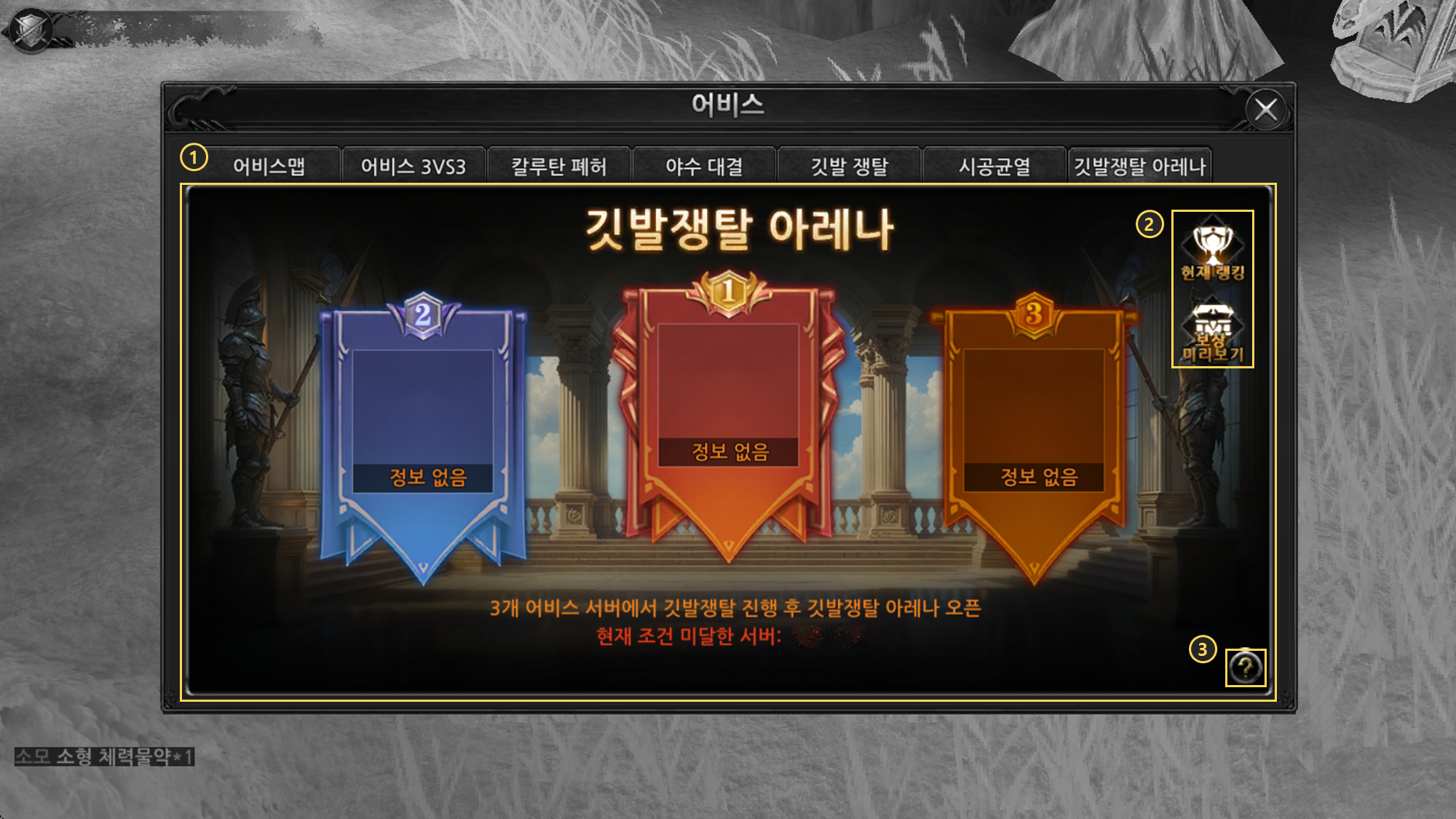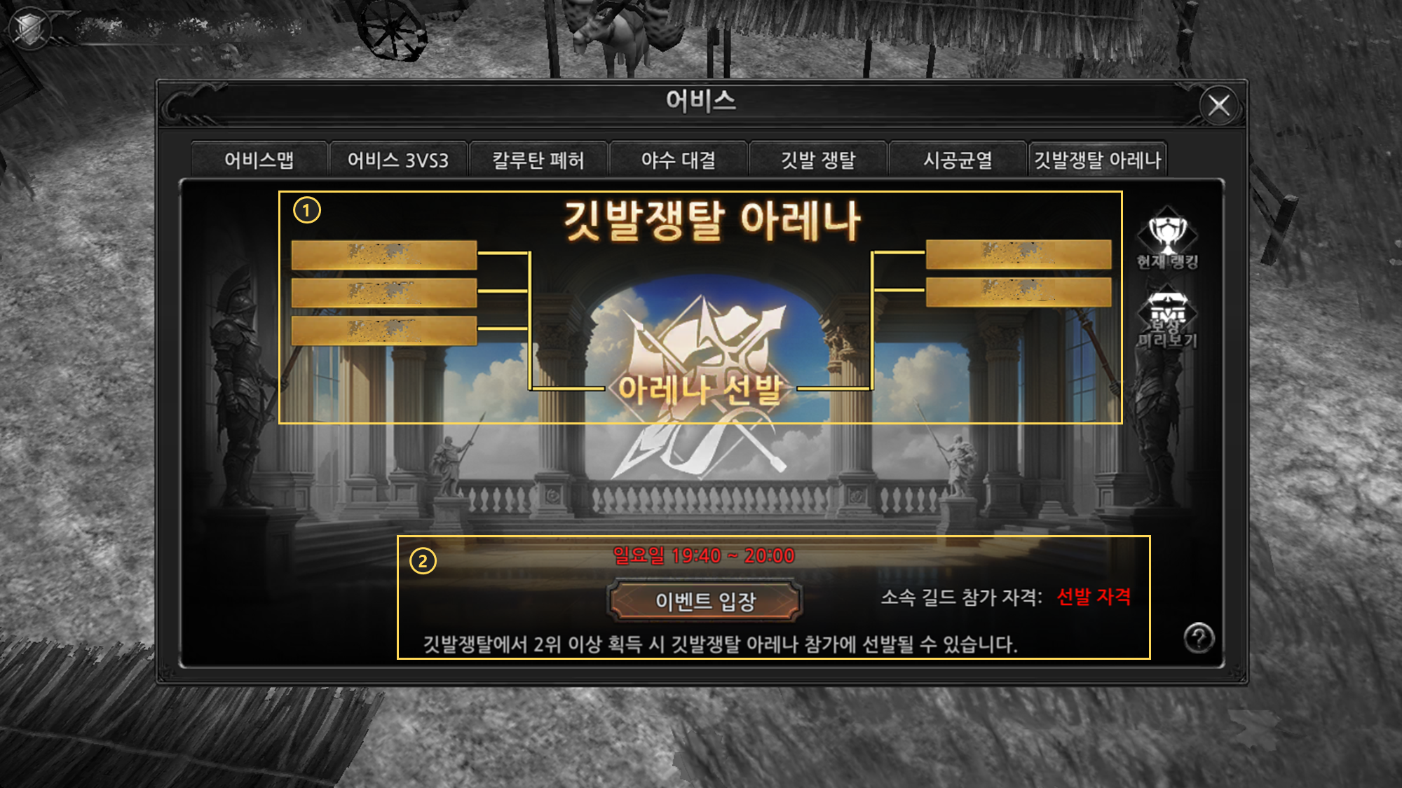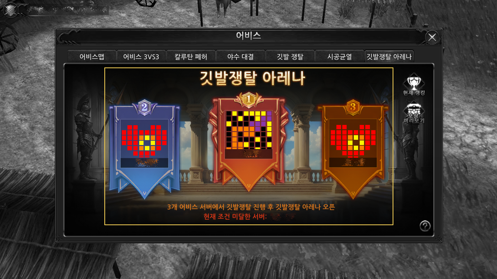* 같은 어비스 서버에 속한 서버 중 3개 이상의 서버에서 '깃발 쟁탈' 랭킹에 등록된 길드가 있어야