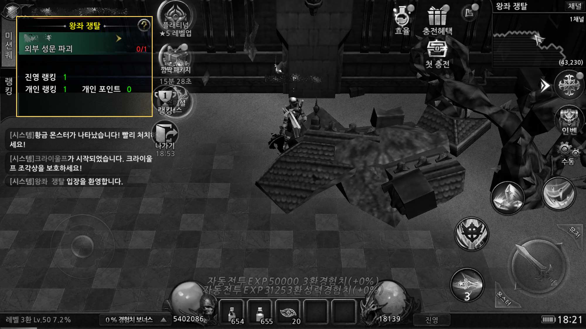 왕좌 점령의 경우 유저가 왕좌에 있을 시, 해당 유저의 진영 인원수에 따라