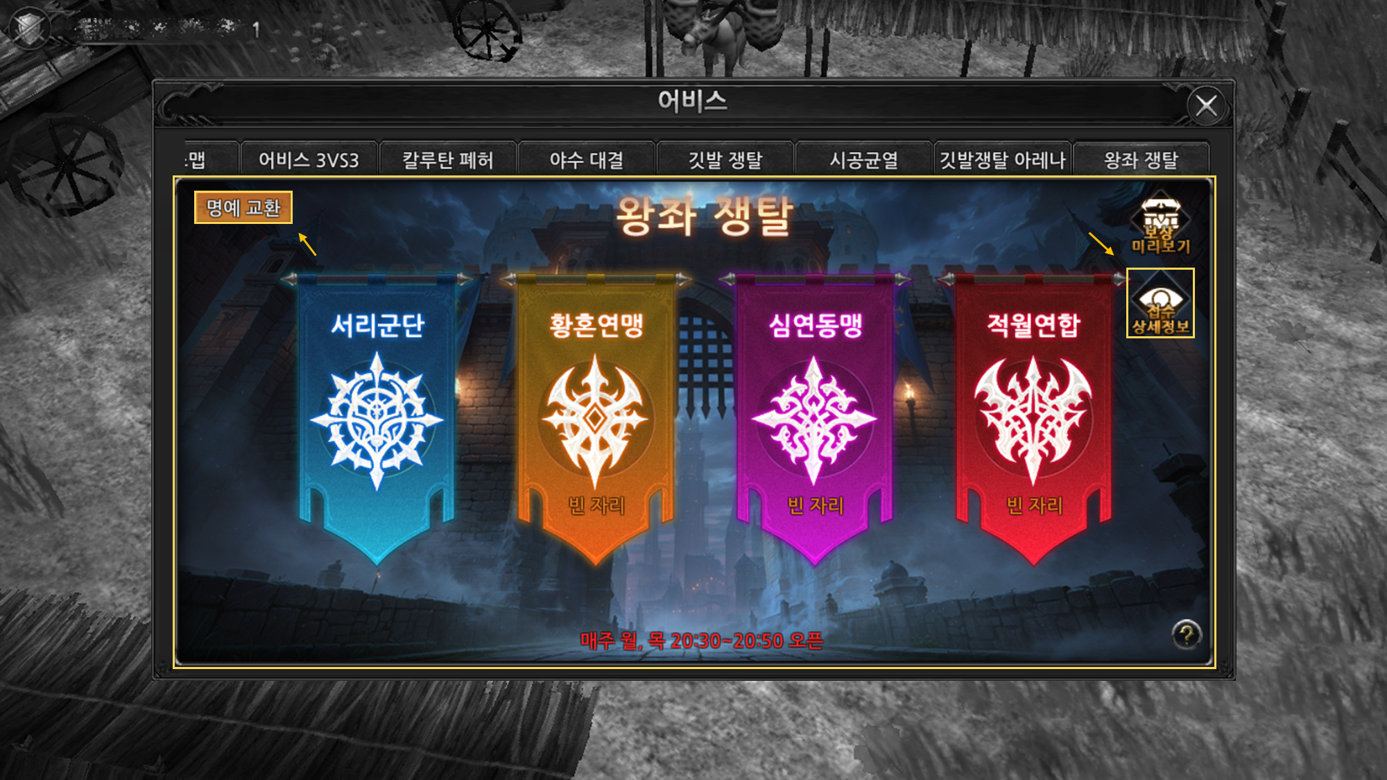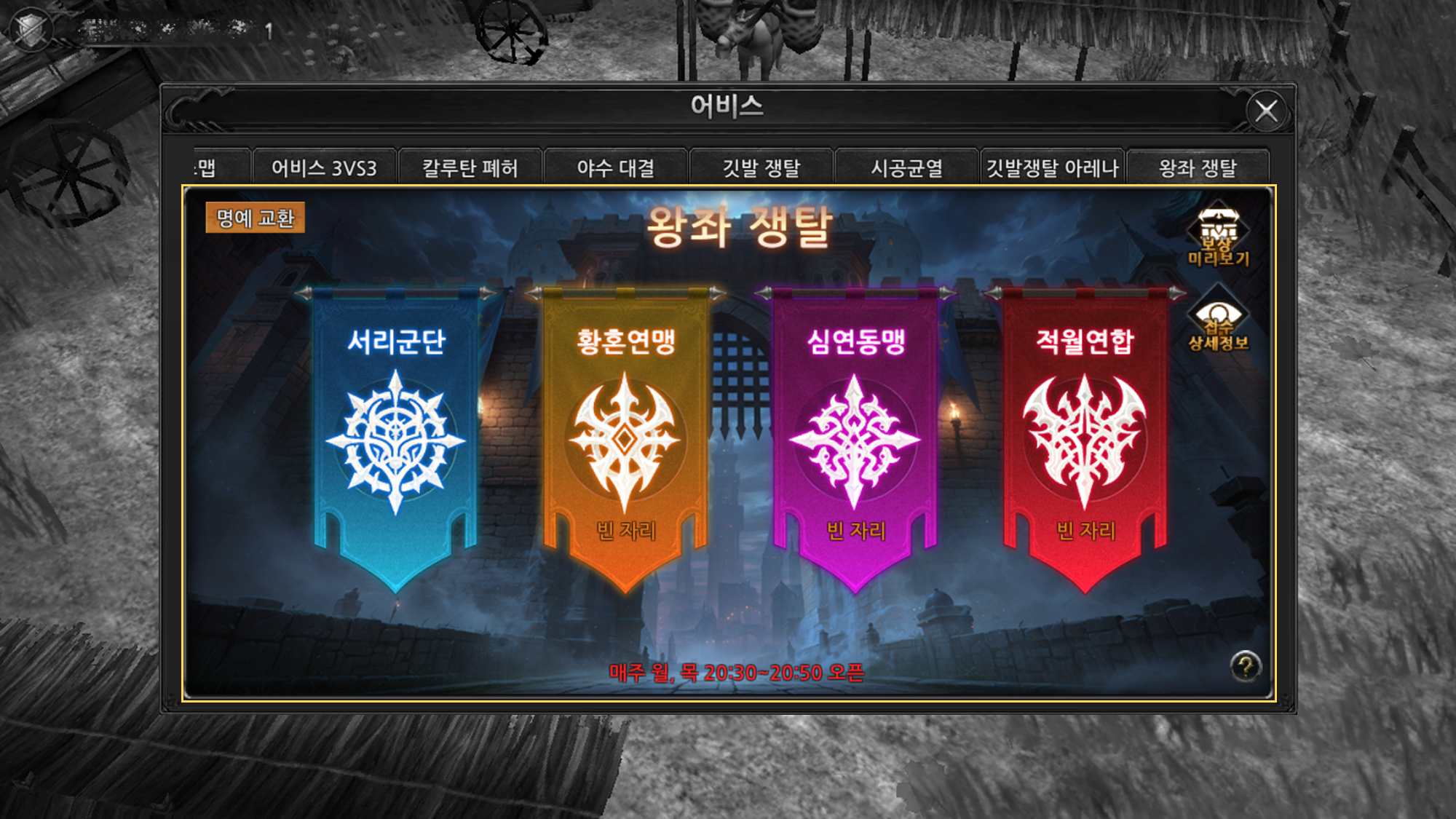 진영을 선택해야 [왕좌 쟁탈]에 참여할 수 있습니다.
