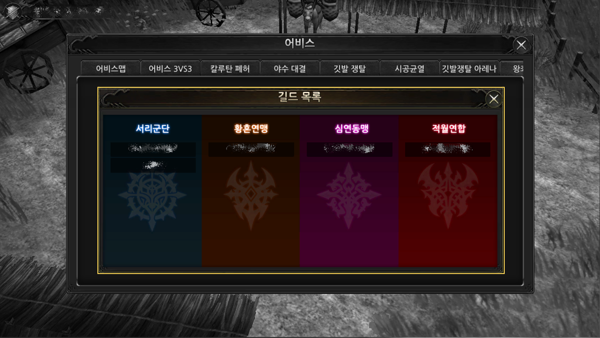 ※ 같은 어비스 그룹에 속한 각 서버의 공성전 성주 길드가 4개의 진영 중 각각의 진영으로 랜덤 배정됩니다.