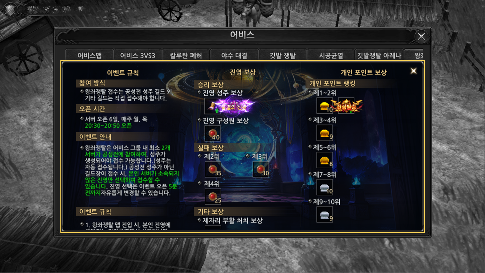 자신이 속한 어비스 그룹 내 최소 2개 서버가 공성전에 참여하여
