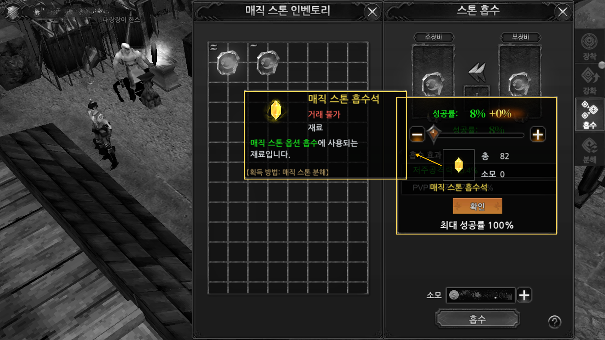 흡수 성공률과 흡수될 옵션을 확인할 수 있습니다.