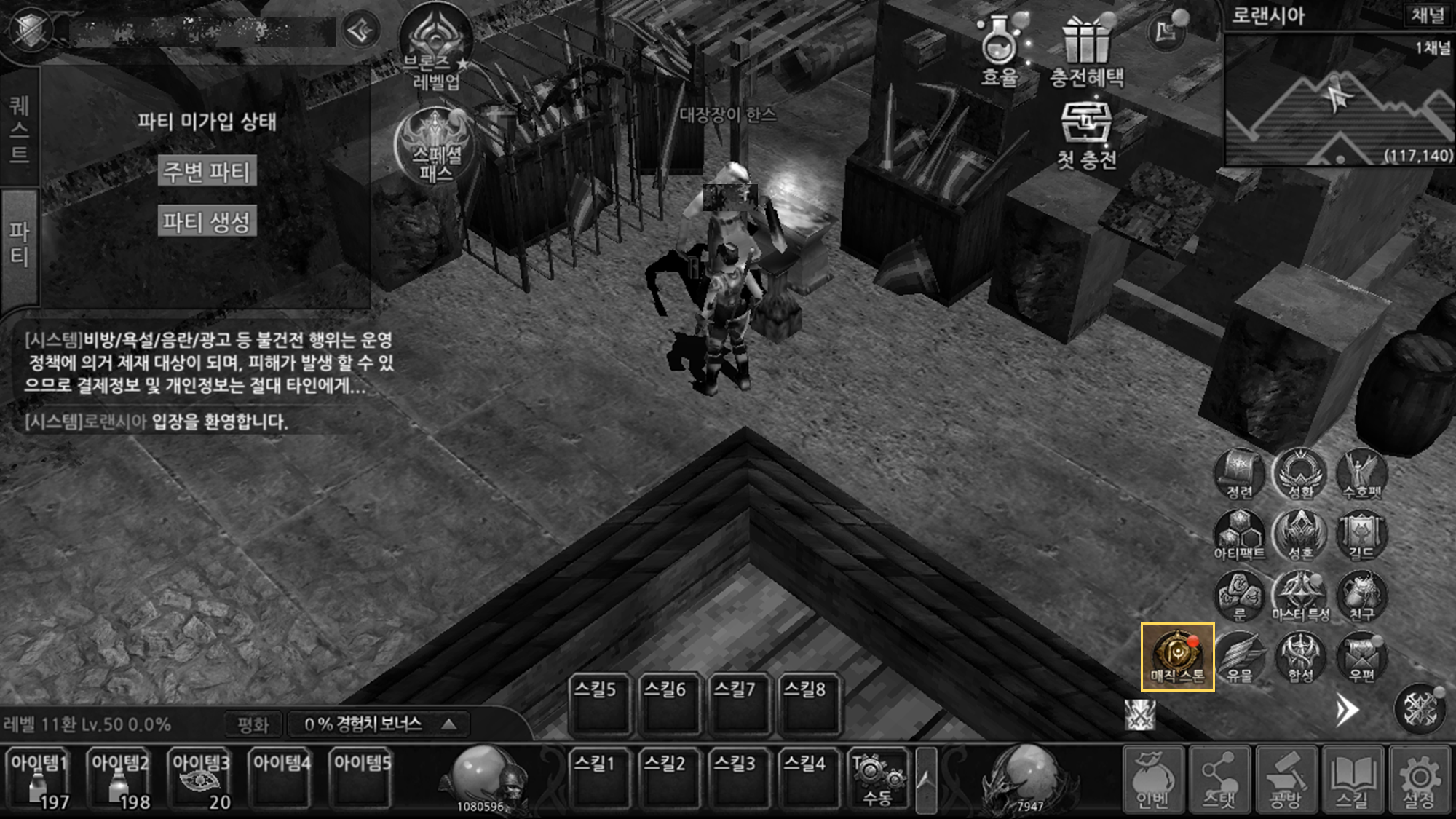 처음 시스템 해금 시, 매직 스톤 블록은 잠금 되어 있으므로,