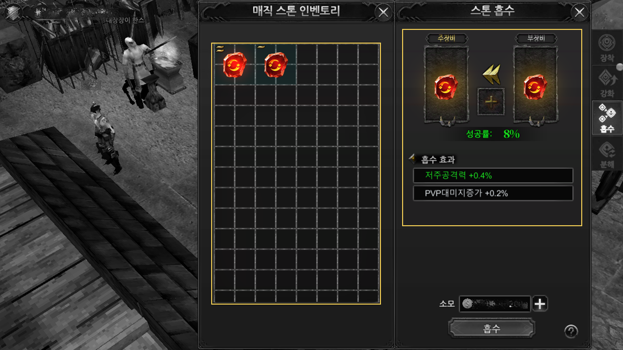※ 장비 흡수는 동일한 종류 '스톤' 2개로 진행할 수 있습니다.